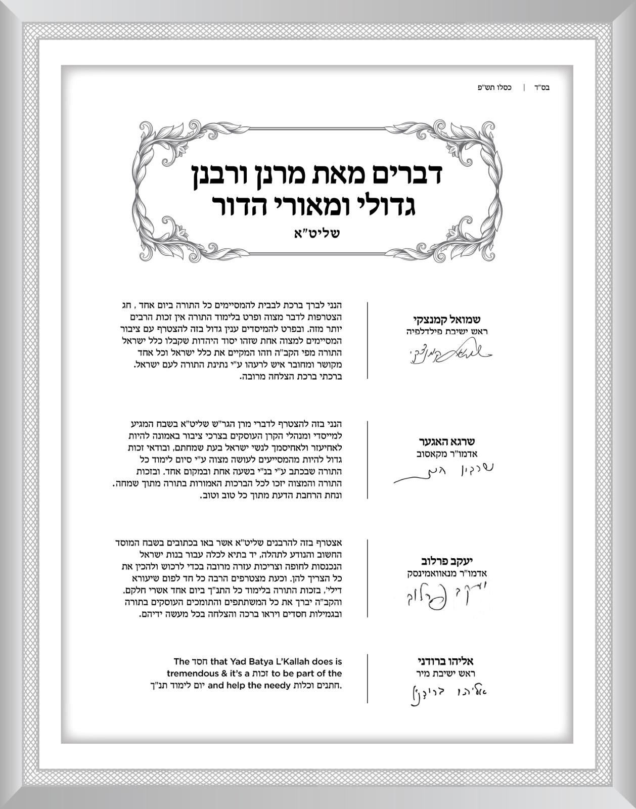 In addition, just a few days ago, Moreinu HaRav Shmuel Kamenetzky Shlita said that anyone who will support this effort– helping Kallahs and Chassanim– will surely have a Z’chus if they themselves (or a family member) are yearning to become one themselves.