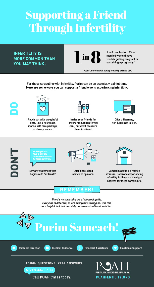 For those struggling with infertility, Purim can be an especially painful time. Here are some ways you can support a friend who is experiencing infertility.