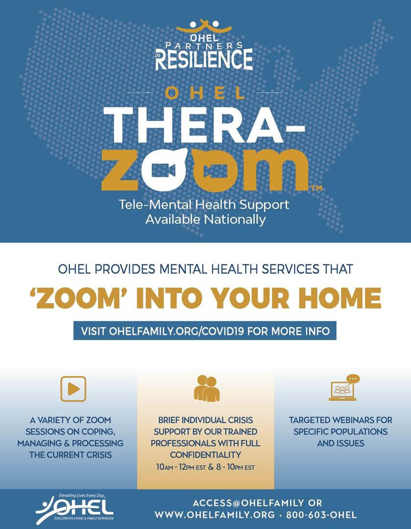 OHEL Children’s Home & Family Services announces the launch of a critical service that will provide accessible tele-mental health support to anyone in need nationally. This initiative will provide a multitude of much-needed support tools in response to the COVID-19 pandemic to virtually attend to the growing demands of the many clients that OHEL serves – families, residents in OHEL homes, older adults, and beyond.