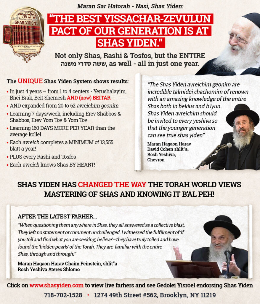 Maran Sar Hatorah – Nasi: “The Best Yissachar-Zevulun Pact of Our Generation Is At Shas Yiden”