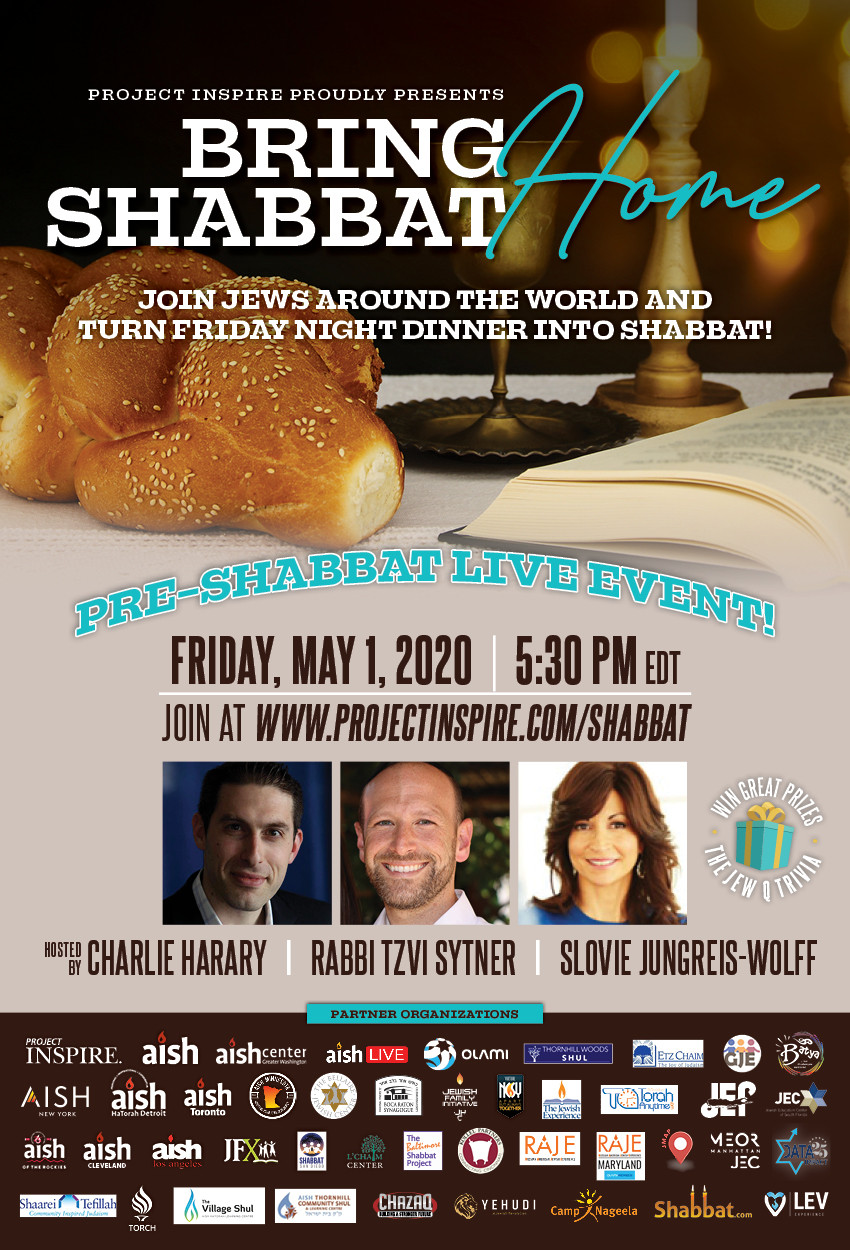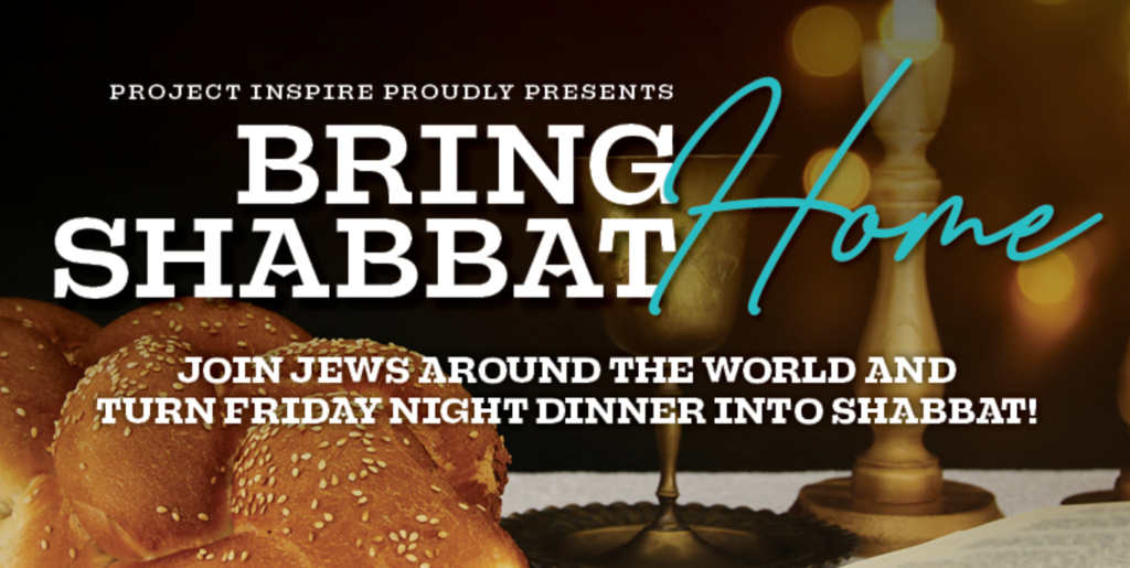 Project Inspire presents Bring Shabbat Home, an opportunity to bring Jews from around the world together to keep Shabbos with enthusiasm and a joyous spirit, the way it was meant to be observed, and “turn Friday night dinner into Shabbat.”