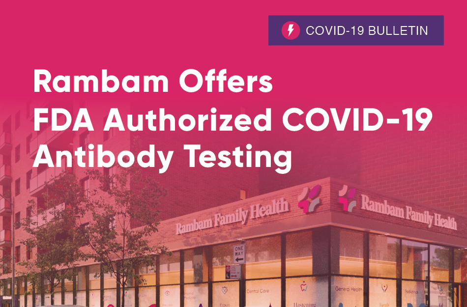 Rambam Family Health in conjunction with the reputable Sherman Abrams Labs, is now performing FDA authorized COVID-19 Antibody Testing.