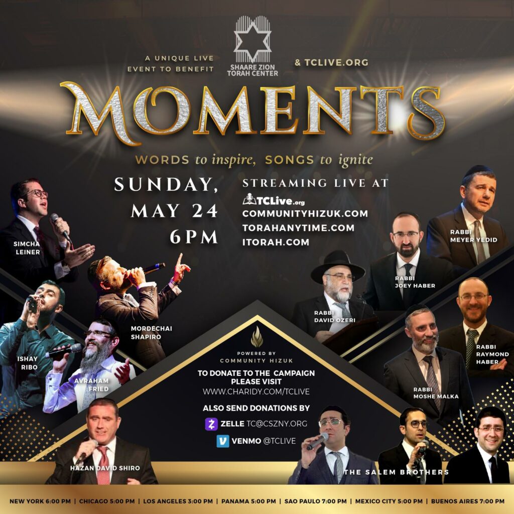 Included in the line up, Simcha Leiner, Mordechai Shapiro, Ishay Ribo, Avraham Fried, Hazan David Shiro, The Salem Brothers, Rabbi Dovid Ozeri, Rabbi Moshe Malka, Rabbi Raymond Haber, Rabbi Joey Haber and Rabbi Mayer Yedid.