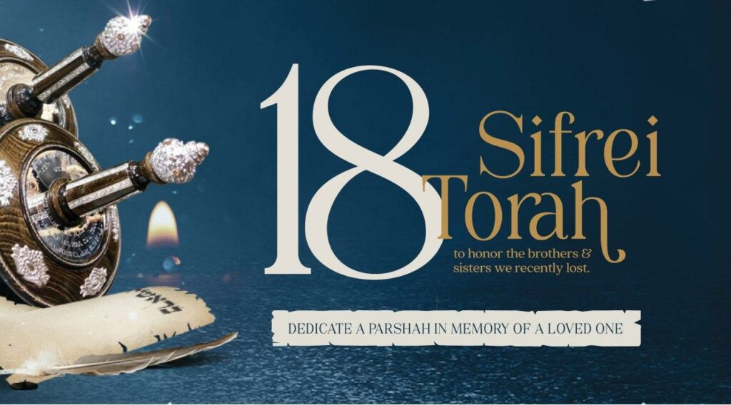 Become a part by visiting: 18torahs.org or by calling: 718-854-4548.
