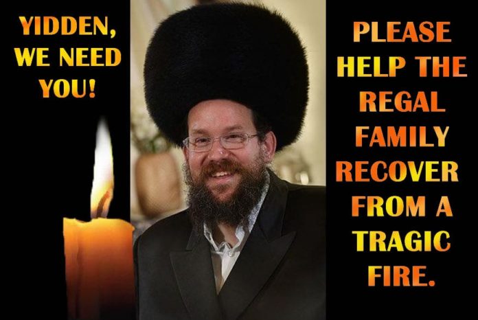 When Reb Chanoch’s wife, Mrs. Chayelle Regal (Chaya Reizel bas Soreh Rivka Alte Gittel), saw her husband enveloped in flames, she ran to save his life, grabbing a hose and spraying water on him. As a result of her heroic attempt, she, too, was badly burned, sustaining second and third-degree burns.A story hard to imagine.