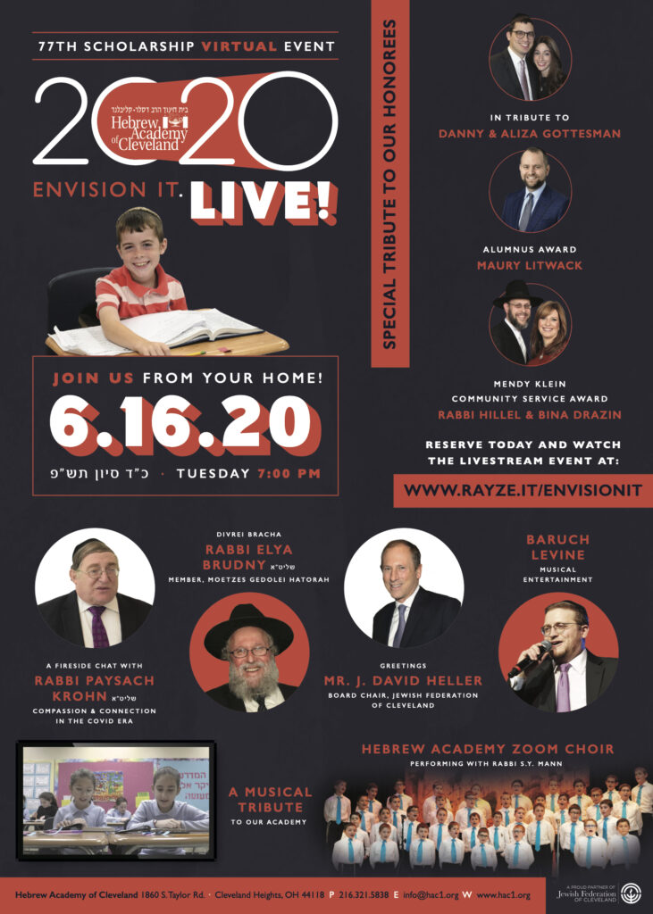 Hebrew Academy of Cleveland’s Virtual Event “2020 Envision It. Live!” is starting in just a few hours!