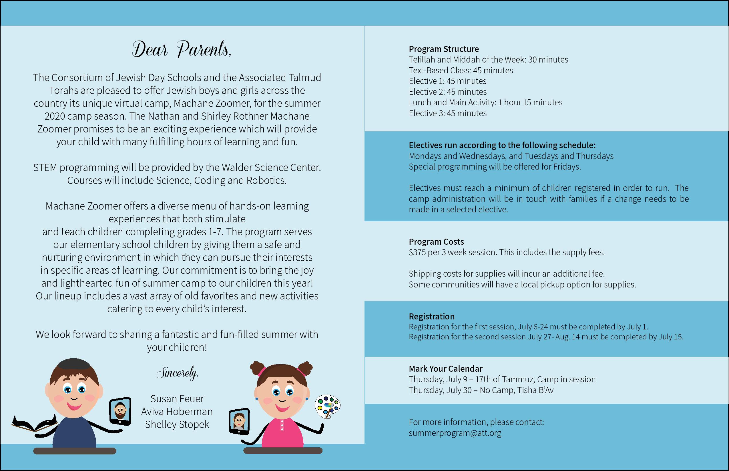 Rabbeim and Moros, hand-picked from across the country, will be providing daily live lessons through Zoom, with learning as well as davening, Erev Shabbos programming, and incentives for participation. As the students will be coming from a variety of backgrounds, care will be taken to ensure that the group and style and level of learning are as appropriate as possible. If you have staff members who you feel would be well-suited to this format, we would appreciate you sharing this initiative with them.