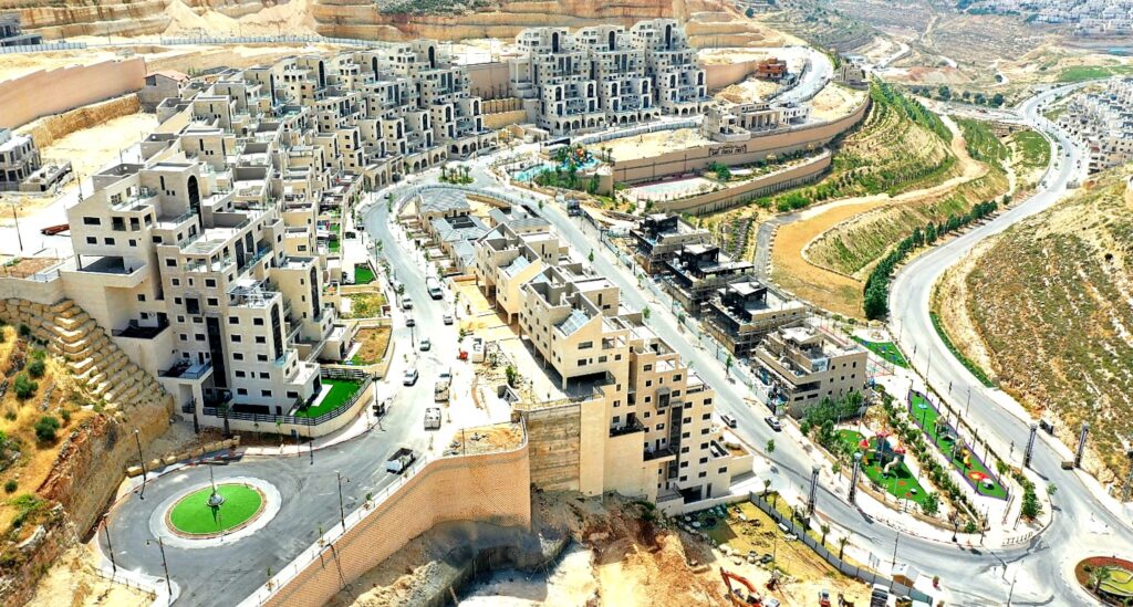 Other clear advantages include schools which were established to suit children of Olim (including a girls’ school and a Talmud Torah for boys), many spacious parks, the shopping area (which will include a supermarket, pizza shop, deli store, dry cleaning, and many more businesses that will provide essential goods and services), as well as a number of shuls with varying nusachim and a luxurious mikveh. Amenities were planned to be as similar as possible to those in upscale American neighborhoods in the United States