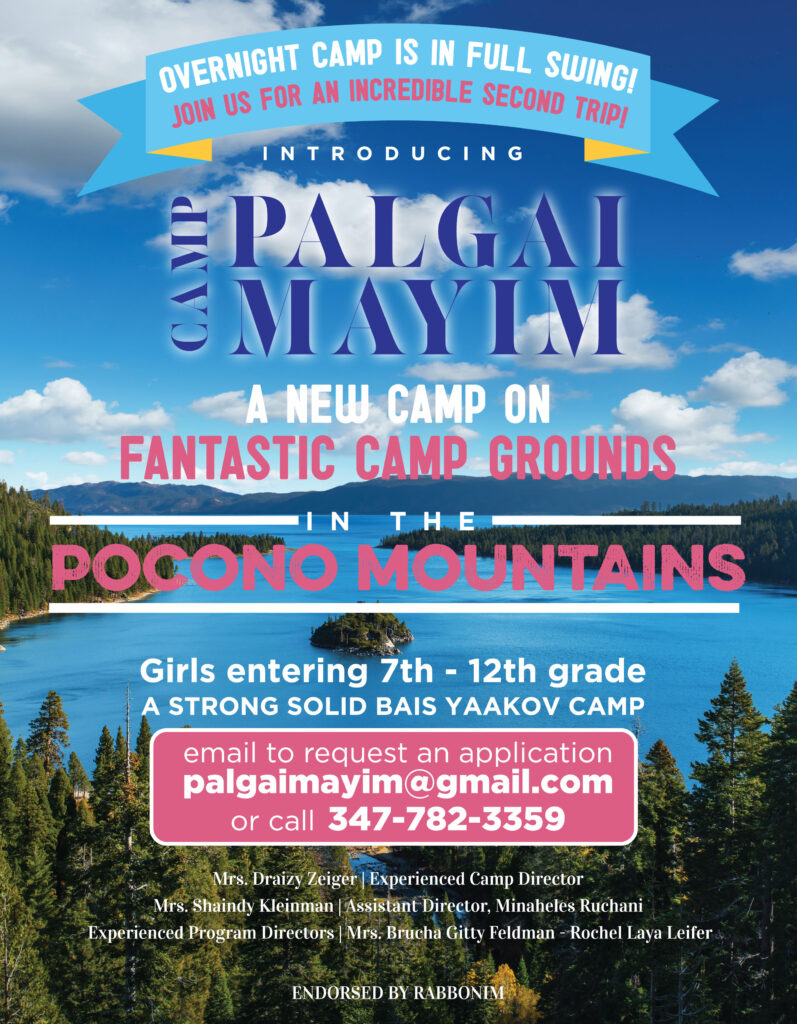 Give your daughter the overnight camp experience she’s been dreaming of. Camp Palgai Mayim’s beautiful campus is up in the stunning Pocono Mountains, for girls going into 7th grade till 12th grade.