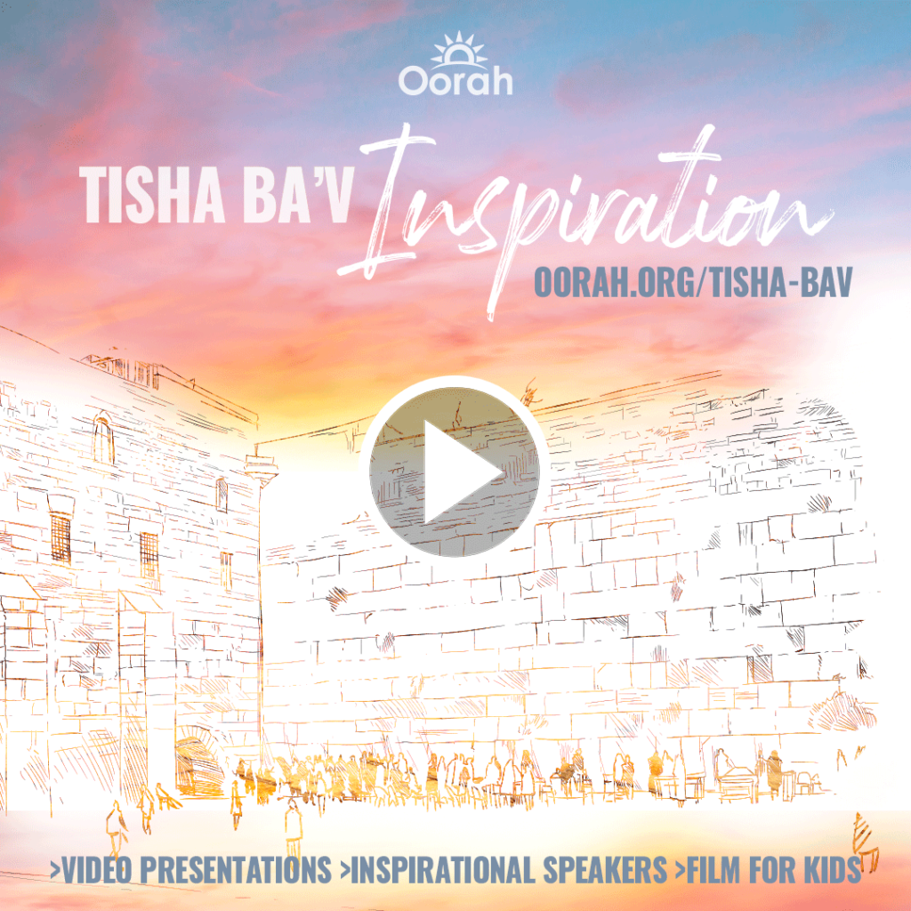 Make your Tisha B’av an inspirational one! You can now access all the Oorah inspiration on the fast of Tisha B’av. Watch our all-new Tisha B’av video and more inspirational videos to add meaning to the day, or learn the halachos of Tisha Ba’av, download and read Oorah’s Tisha Ba’av guide. Whatever your style, there’s something for you! Don’t let the day pass without making the day relevant to your life and getting inspired.