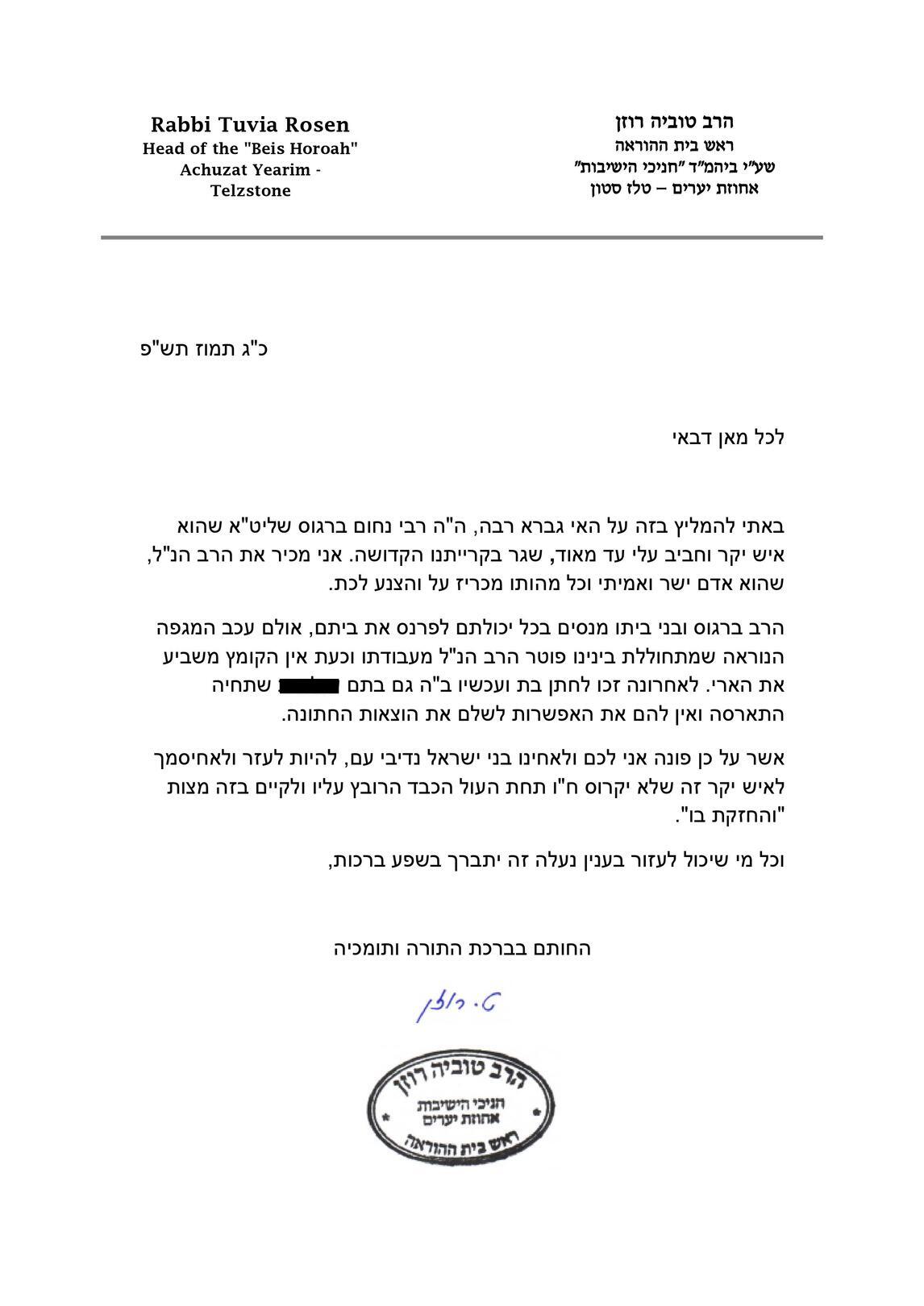 “Those who do the part,” Rabbi Glaser asserts, “will certainly בעז”ה, in the merit of this mitzva of hachnasas kalla, have Hashem watching over you and taking care of you in all the details of your life.”
