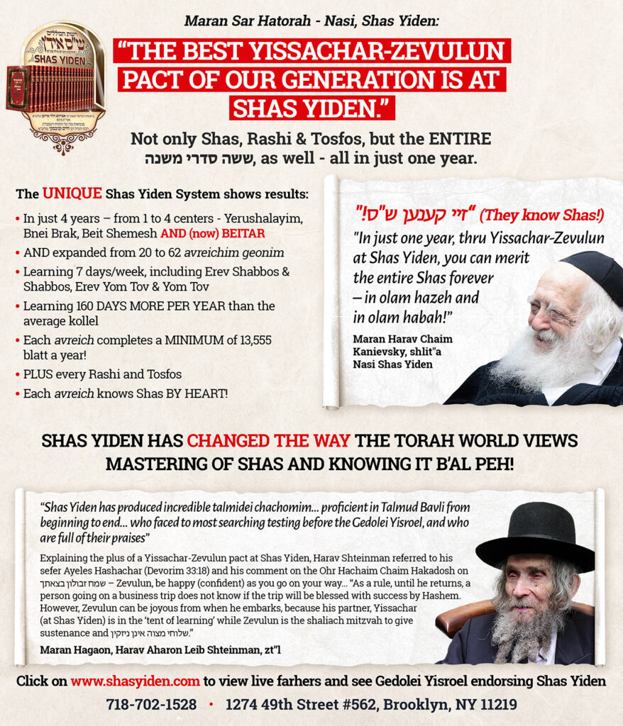 Maran Sar Hatorah Nasi: The Best Yissachar-Zevulun Pact of Our Generation Is At Shas Yiden