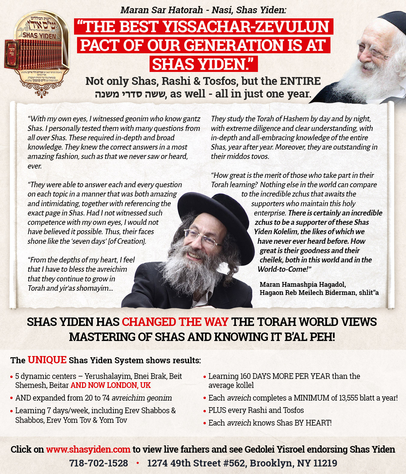 Maran Sar Hatorah Nasi: The Best Yissachar-Zevulun Pact of Our Generation Is At Shas Yiden