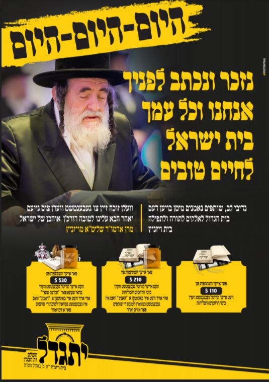 The Viznitzer Rebbe shlita, the beating heart of klal yisroel, he is the ‘Rebbe’ of everyone, sector and affiliation notwithstanding. Klal yisroel acts on the Rebbe’s words and reverently accepts everything he says. The Rebbe is a pillar of fire, leading the nation, carrying the entire generation on his heart, and bearing the burdens and responsibilities on his lone shoulders.
