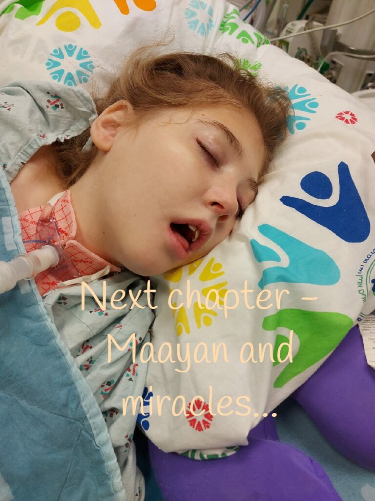 To keep you up to speed, our precious daughter Maayan just underwent a TRACHEOTOMY SURGERY in order to allow her to breathe properly – as she had a COLLAPSED LUNG with SERIOUS ONGOING PNUEMONIA.
