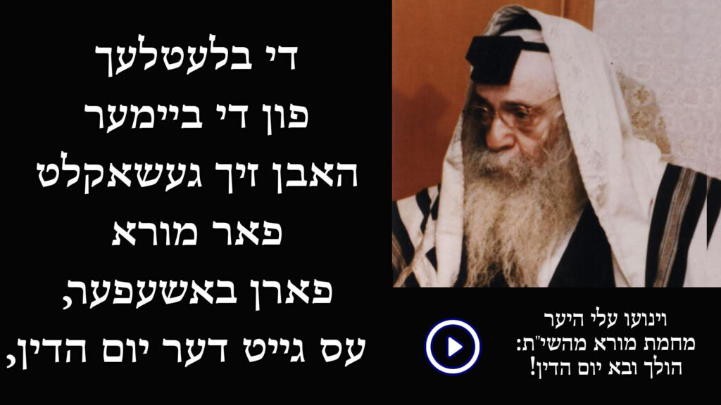 נ.ב. להשיג שאר הקלטות, ווידיאו’ס, מד”ת של רבינו מצאנז קלויזענבורג זי”ע, שנערכו וי”ל על ידינו נא לשלוח אימייל לכתובת: באוצר החיים: