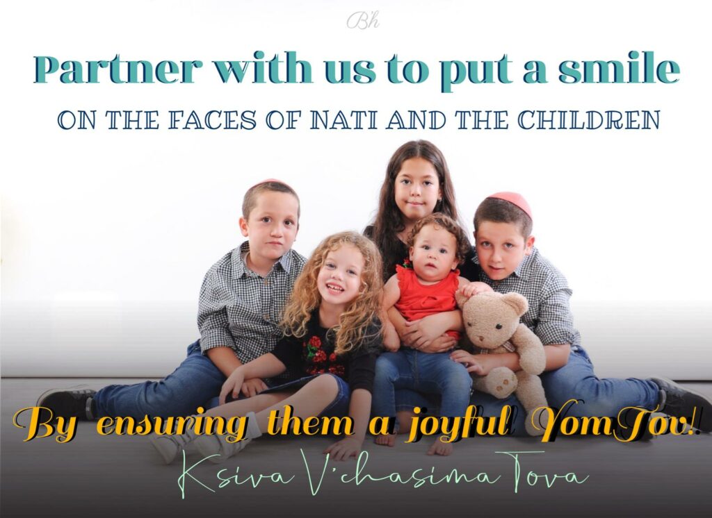 Let us bring a smile to a widow with orphaned children at a young age who will Be this year without their father in the table r”l. Come partner with us to ensure them a joyful holiday.
