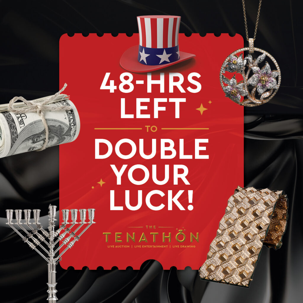 For the next 48 hours only, you can double your luck in the Ten Yad Auction. Thinking of buying tickets? Buy them today to access this incredible deal!