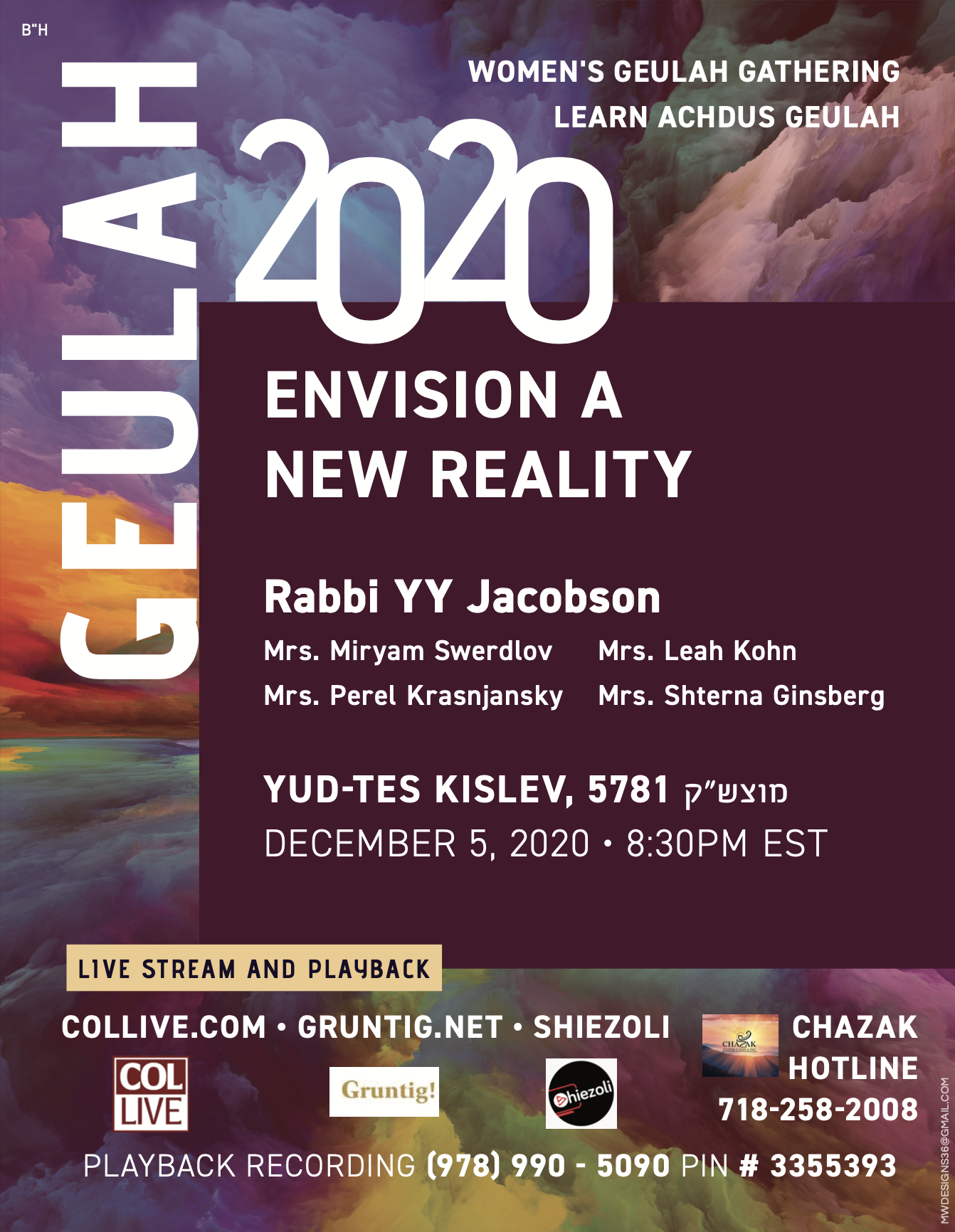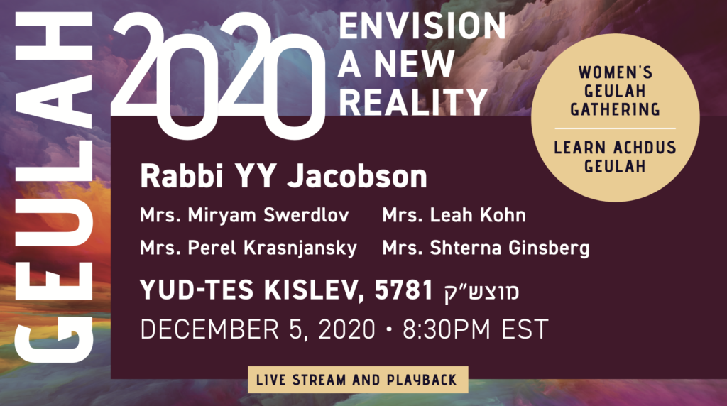 The theme of the event is “Geulah 2020: Envision a New Reality.” Indeed, we need 2020 vision to see the wonders of 5781 (and 2021)!
