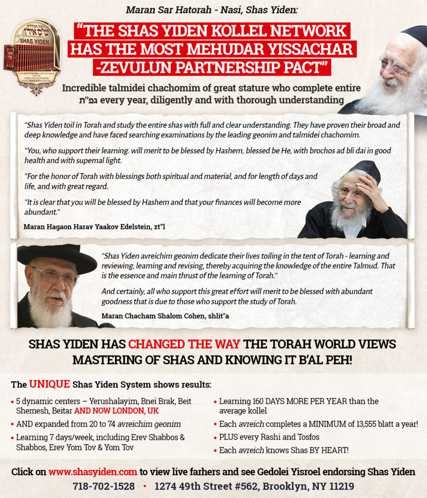 By next year, CHANUKAH, the z’chus of Shas, Rashi & Tosfos can be yours thru Shas Yiden Yissachar-Zevulun!