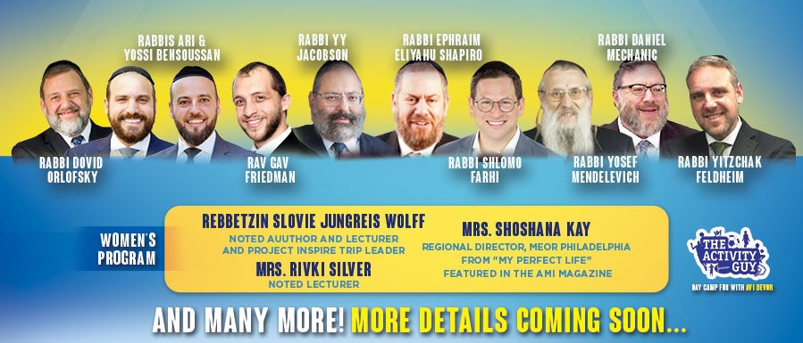 Join the incredibly inspiring weekend, and hear from notable speakers such as Rabbi Dovid Orlofsky, Rabbis Ari and Yossi Bensoussan, Rav Gav Friedman, Rabbi YY Jacobson, Rabbi Ephraim Eliyahu Shapiro, Rabbi Shlomo Farhi, Rabbi Yosef Mendelevich, Rabbi Daniel Mechanic, and Rabbi Yitzchak Feldheim.