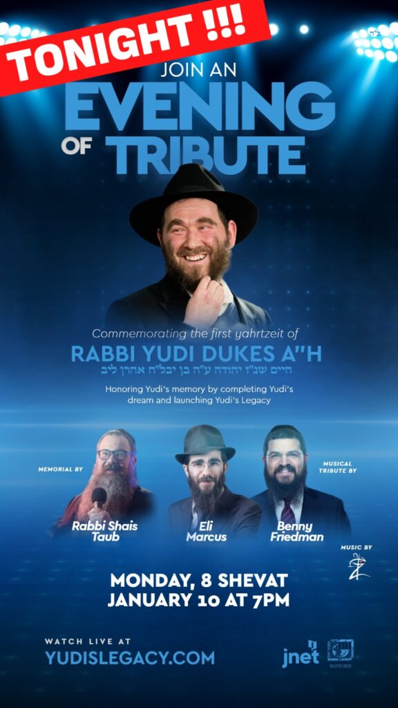 Tonight, JNet – The Jewish Learning Network is honoring Yudi’s memory and launching Yudi’s Legacy. Join this moving and uplifting event at YudisLecagy.com.