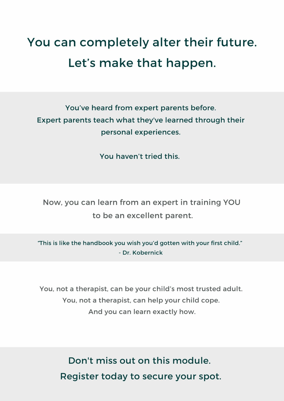 - All the techniques broken down so you can create an environment that supports your child’s changes