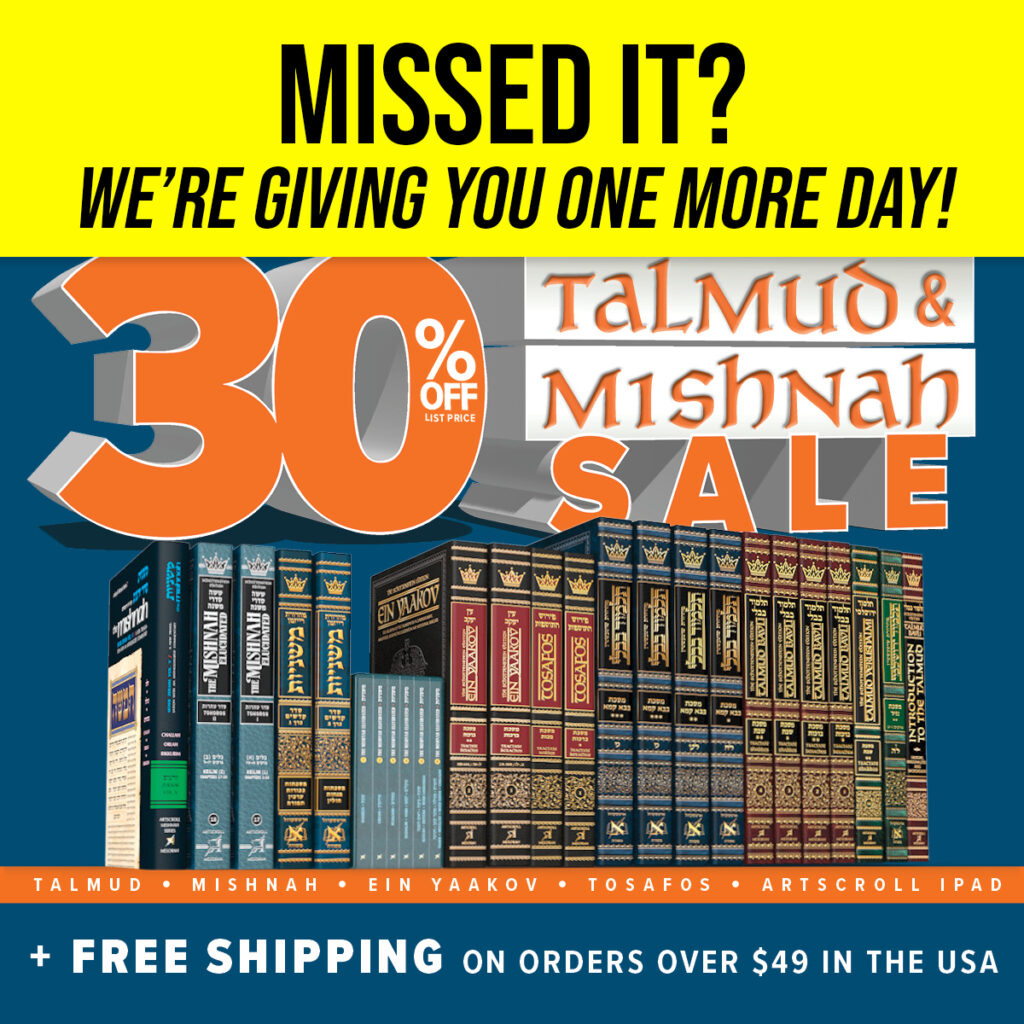 For ONE MORE DAY, take 30% off all ArtScroll Talmud and Mishnah sets and individual volumes!