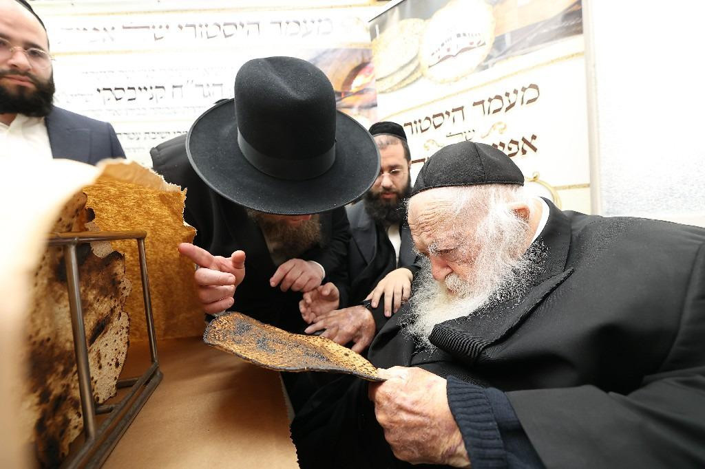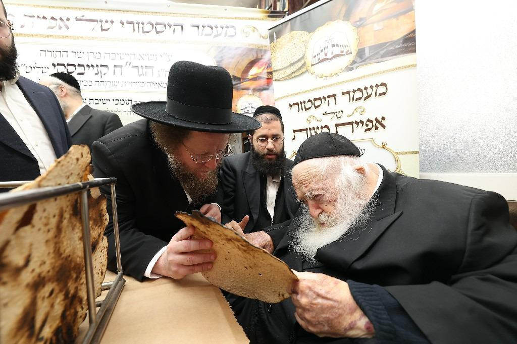 Maran Sar HaTorah Rav Chaim Kanievsky shlit”a, Nasi of Yeshivas Ateres Shlomo, prepared a special gift for the yeshivah supporters: three matzos mitzvah for the leil ha’Seder that he baked in a bakery in his study.