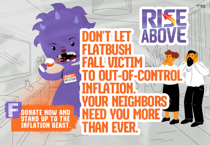 Inflation doesn’t hurt everyone the same way. Many local families are already in a pinch. Then, a big expense like Pesach comes along and the Inflation Monster wrecks what’s supposed to be a joyous seder. No one should have to pick between paying the electricity bill or enjoying a family feast. Especially not in a generous community like Flatbush. We take care of us. And we won’t let the Inflation Monster pick on families in our neighborhood. Join us in being the anti-inflation solution.