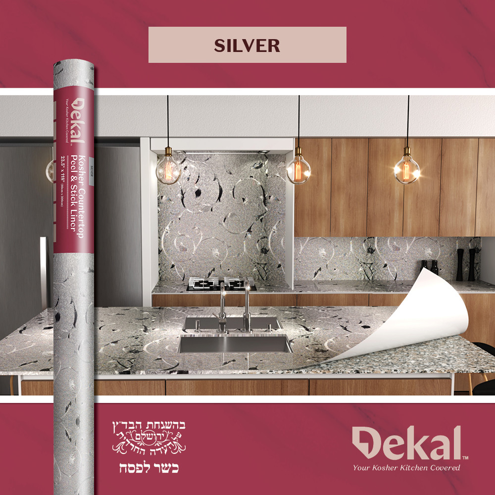 SIX: Dekal is not your grandmother’s contact paper. Covering countertops for Pesach with regular contact paper is famously unpopular. Since regular contact paper is designed to be a permanent cover, it is extremely sticky, hard to work with, and difficult to remove. It typically is difficult to apply without resulting in bubbles and wrinkles, and is easily dented or torn by kitchen utensils.