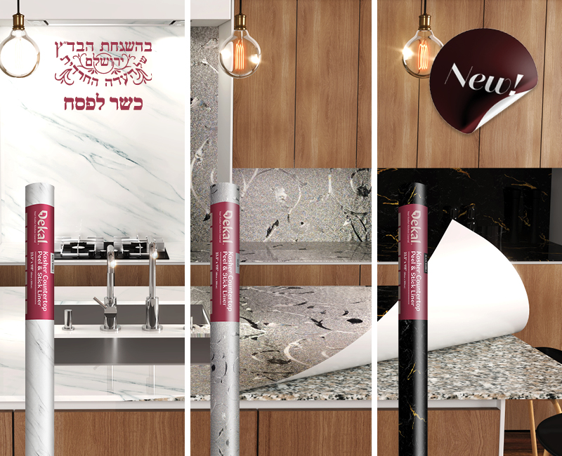 ONE: Dekal conforms to the highest standard of kashrus. It is the first countertop cover with Kosher for Passover certification (BaDaTz Yerushalayim). That means you will have no worries about food being in direct contact with your countertops covered by Dekal.