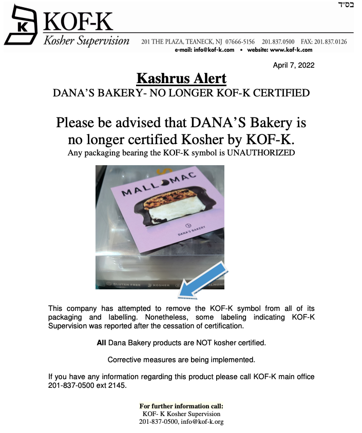 Kashrus Alert from the KOF-K