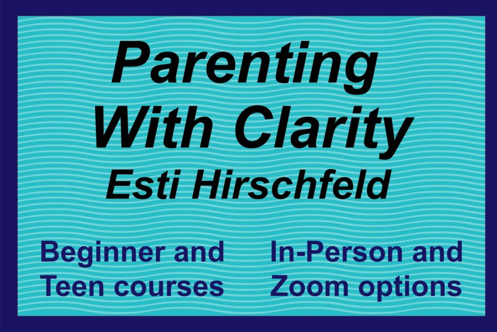 Topics: Discipline, boundaries, building a positive and healthy relationships- even with the very challenging child, your child’s emotional needs, maintaining a positive home, dealing with out- of-control behavior, ruchnius in the home, siblings dynamics and safety.