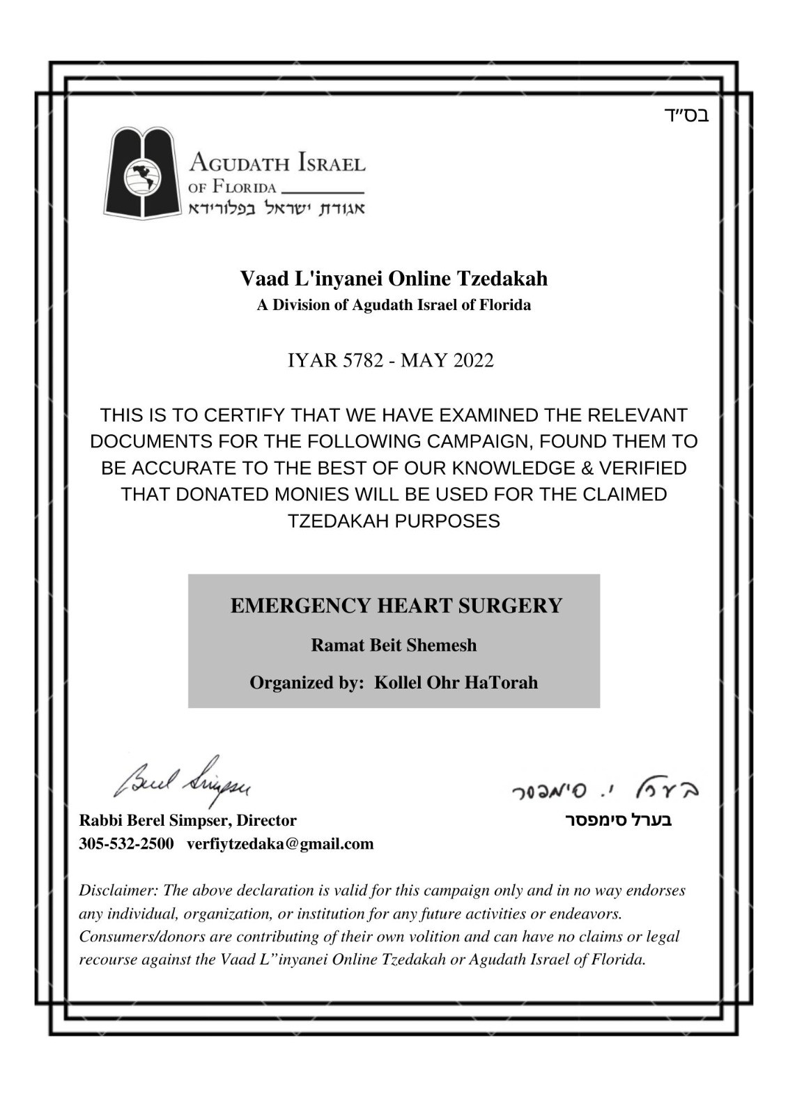 This bundle of joy, Hadas bas Orah, is less than 5 years old. Already she has gone through 7 complex heart surgeries.