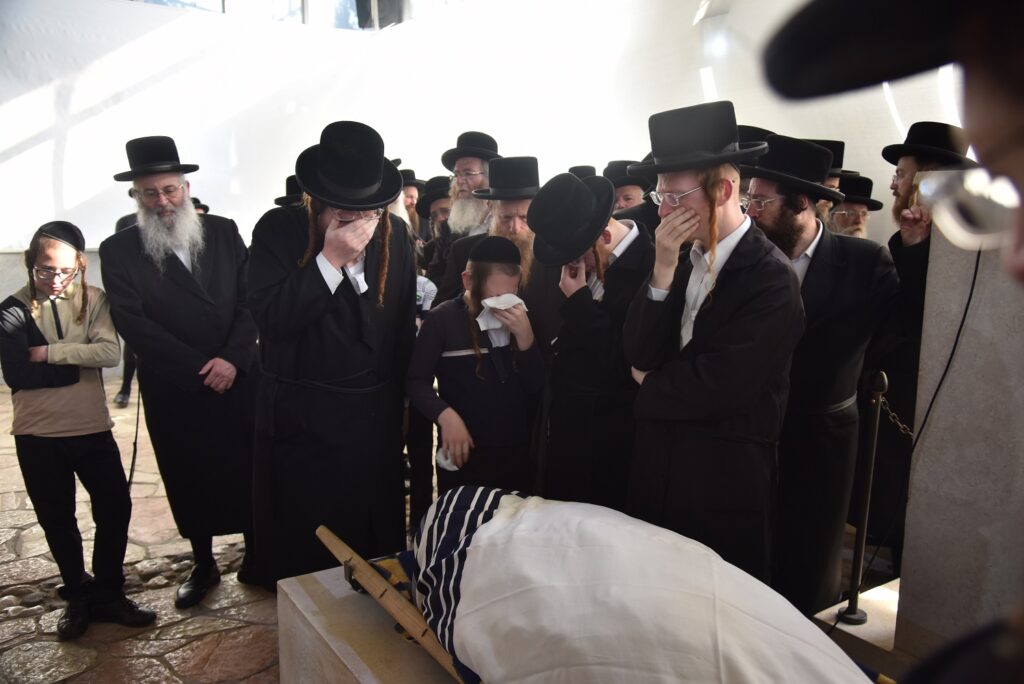 All eyes were on the Rabbi’s children, young boys with long red peyos and puffy eyes from weeping. The youngest hung his head and cried openly over his father’s body, as onlookers struggled to maintain composure.