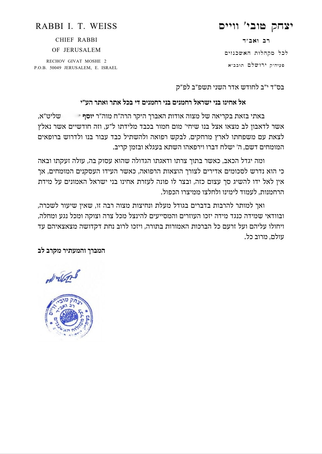 לרפואה שלימה בתוך כל שאר חולי ישראל