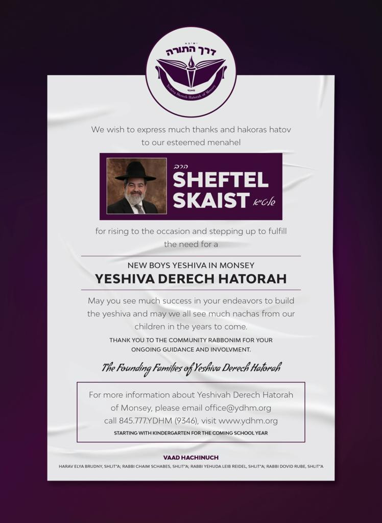 YDHM’s Vaad Hachinuch is comprised of Horav Elya Brudny, Shlita, Rabbi Chaim Schabes, Shlita, Rabbi Yehuda Leib Reidel, Shlita, and Rabbi Dovid Rube, Shlita.