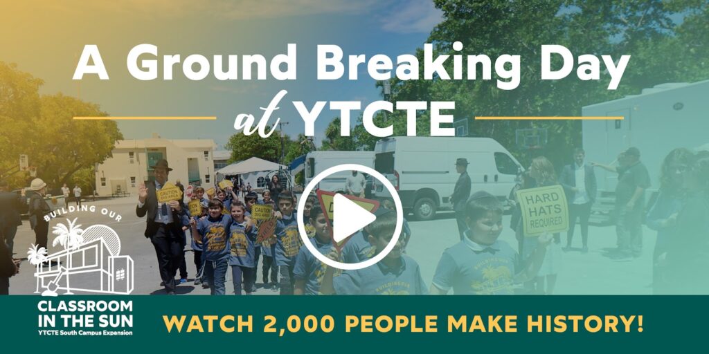 YTCTE, one of the largest, most established Yeshivos outside of the New York/New Jersey area, has been growing exponentially with a current enrollment of over 1,200 talmidim and talmidos from preschool through Bais Medrash. However, the Yeshiva’s physical capacity has been stretched to its limits and plans were developed to build a new 80,000 square foot educational center and auditorium/sports complex. On May 30, a standing-room-only crowd came to North Miami Beach to share the excitement and support the Yeshiva’s growth as they broke ground on this exciting, and much needed project in what was a tremendous display of Kavod HaTorah.