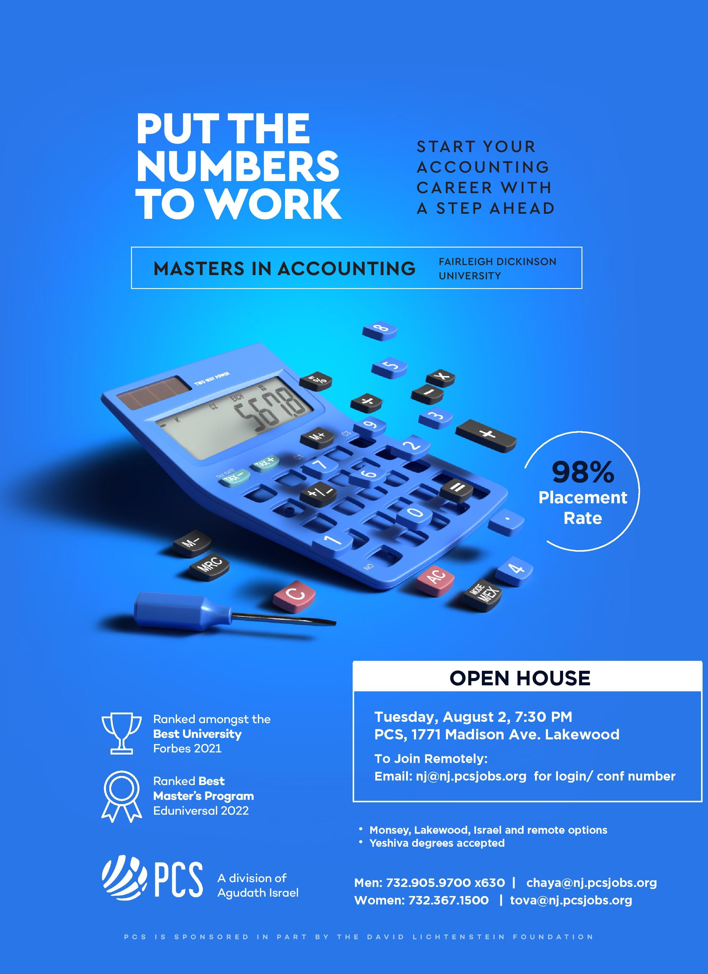 PCS Masters in Accounting Open House this Tuesday August 2!