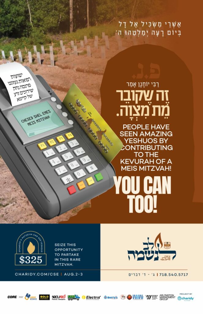 “You are making a wise decision,” said my newfound friend. “This is a true chesed shel emes and will be a zechus for you in the hours ahead.” I paid for two matzeivos. R’ Mendel told me “From every mitzvah that we perform, a malach is created in heaven, may this malach be a meilitz yosher for you in heaven.”