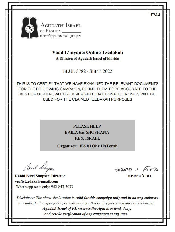 Please help Chaim get back on his feet to support himself and his family. Partner with Hashem in this opportunity to put food on the table for Seudas HaChag. Please also daven for Baila Bas Shoshanah for a refuel shleima. In doing so, Hashem should bless you in health and parnassah.