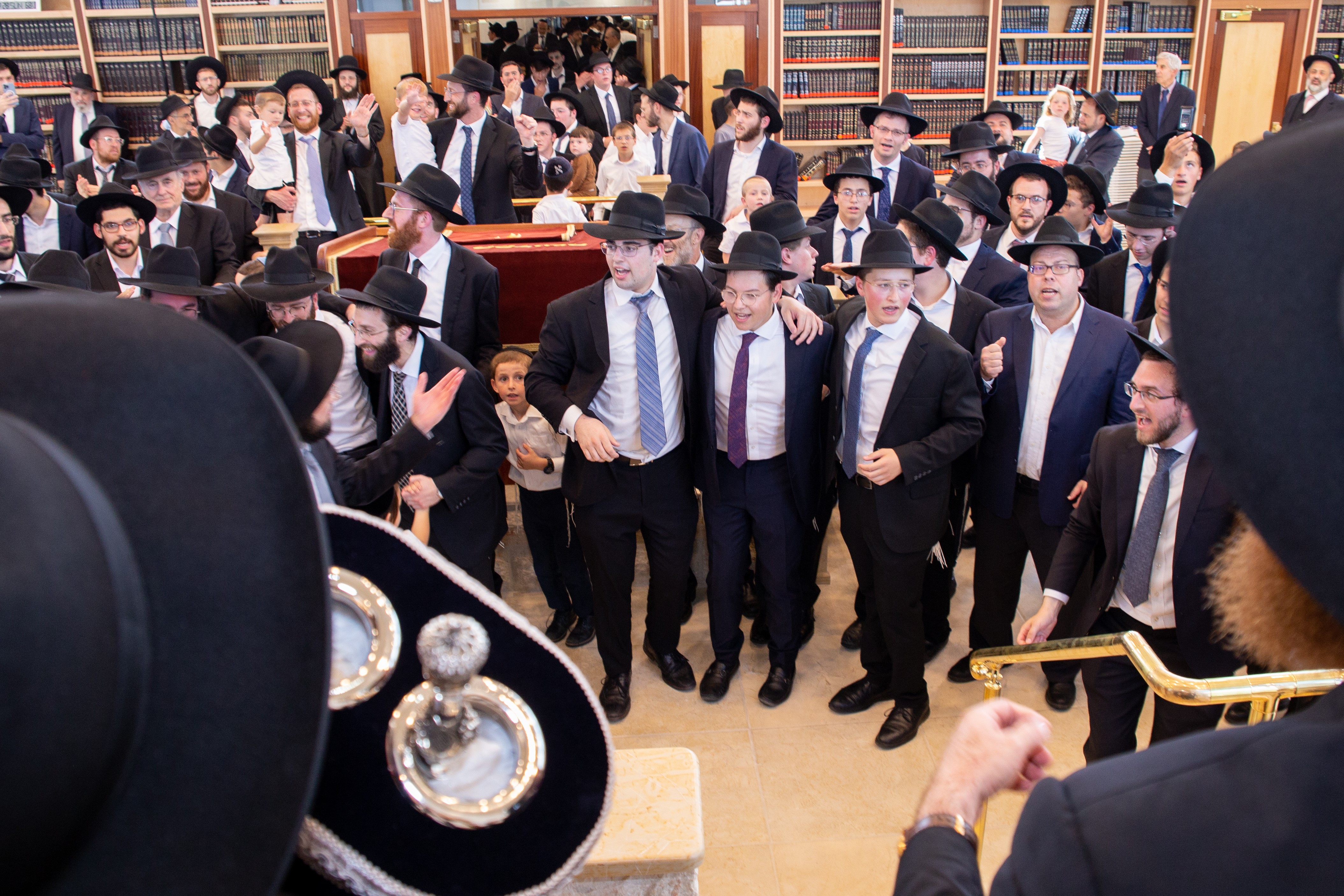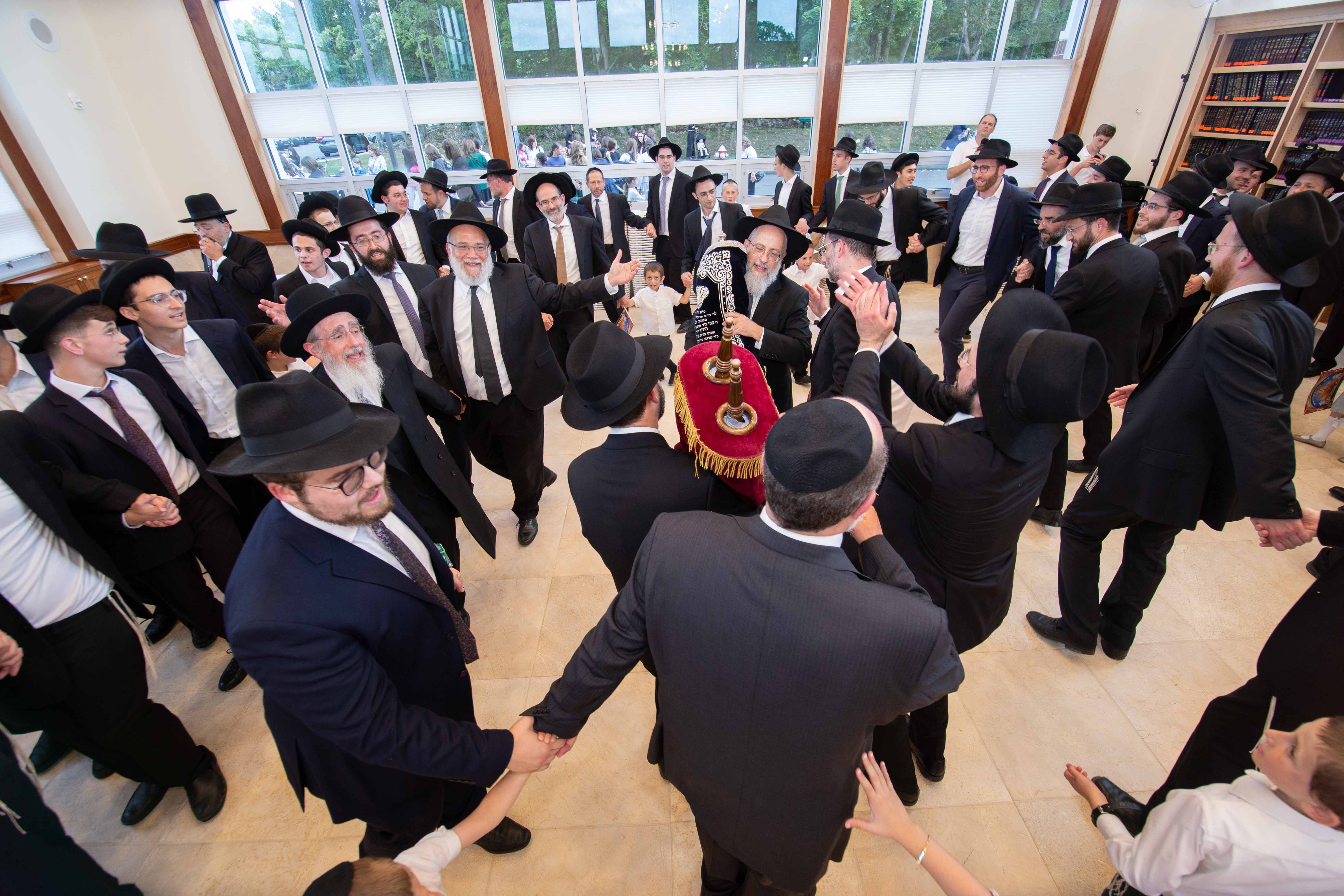 The procession left from the adjacent Maple Spring Estates, a budding gated community comprised of families who have seized the opportunity to live in close proximity to the Yeshiva while enjoying the serene surroundings of Naugatuck. The crowd, which included many Rabbonim, bnei torah, and baalei battim from neighboring Waterbury, danced its way through the streets, reaching a crescendo upon entering the Beis Medrash. The Rosh Kollel, Rav Moshe Makovoz shlita, then led the tzibbur in the recitation of tehillim.