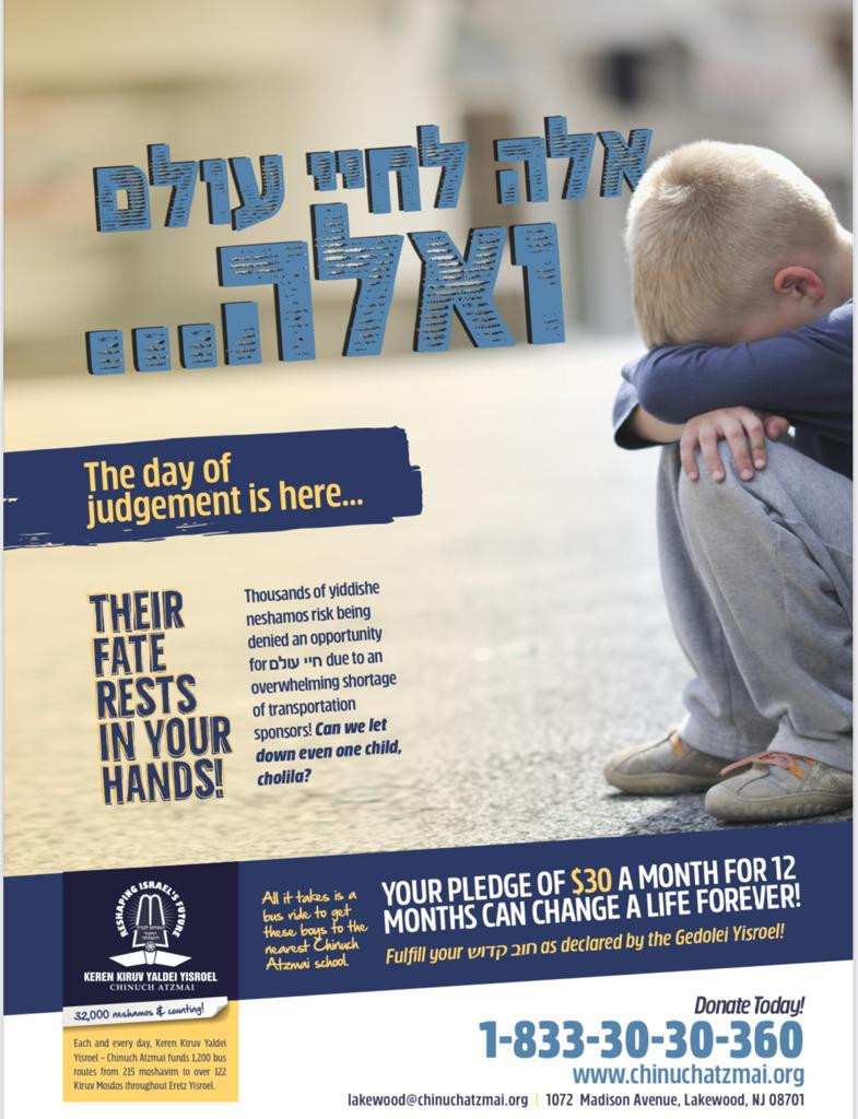 This is a time where people look for a way to help tip the scales in their favor. A time where acquiring zechusim is of the utmost importance. Wouldn’t it be befitting if the zechus we all merit, is that of saving another neshama that hangs in the balance?