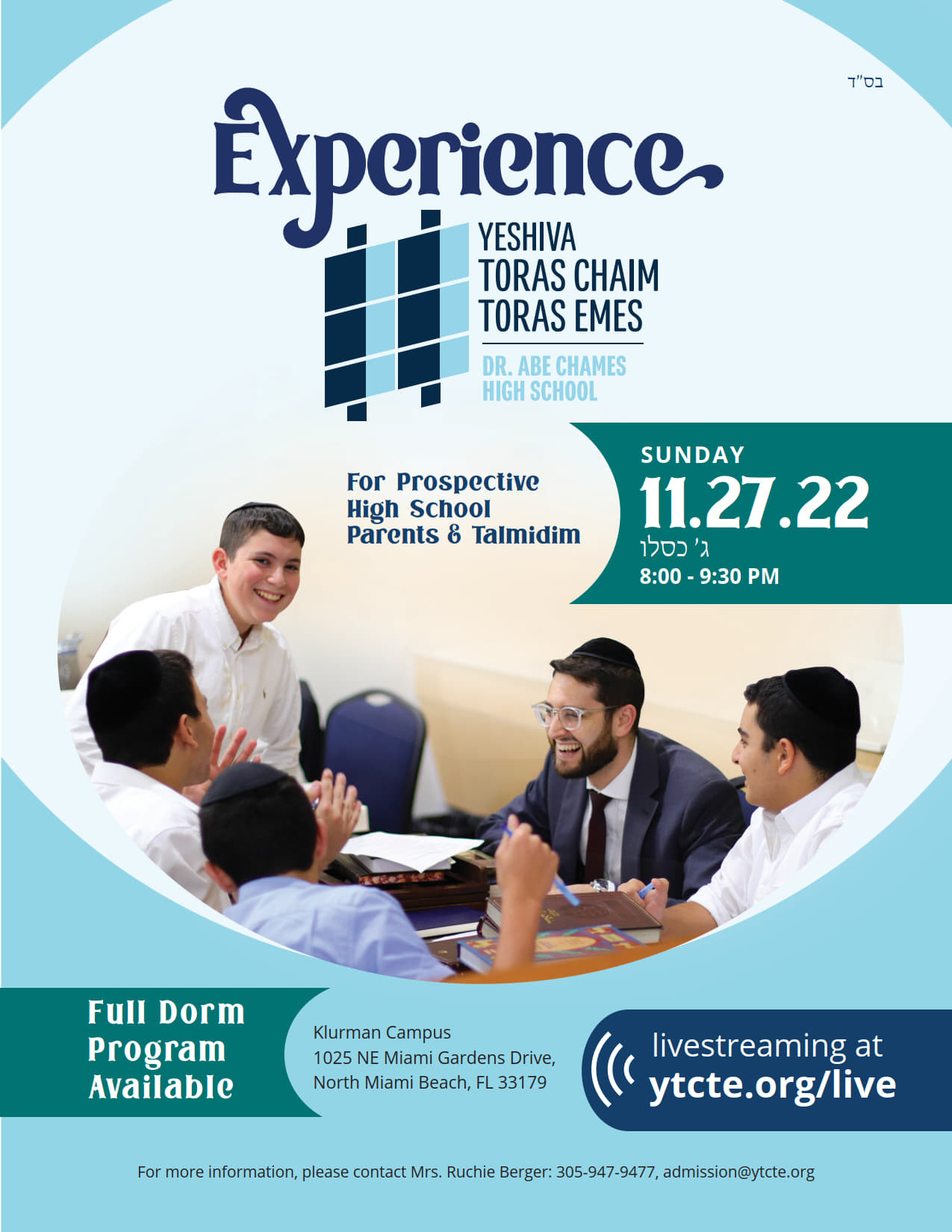 Yeshiva Toras Chaim Toras Emes, one of the largest Yeshivos in the Southeast, is hosting an open house for its Dr. Abe Chames High School this Sunday, November 27, where prospective parents and students can see why so many families choose YTCTE as their mesivta.