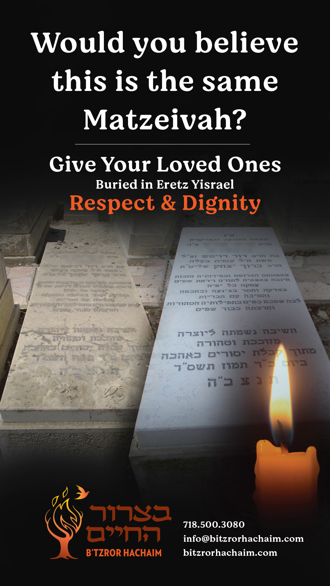 Based in the USA and Israel, with decades of experience, B’tzror Hachaim takes care of every detail, from helping with the purchasing of the matzeiva, to yearly minyanim on the yahrzeit. They even will go on request for special needs, such as bringing an invitation to an upcoming simcha. For thousands of families, B’tzror Hachaim makes it feel like they have a family member close by who understands and cares for their needs as if it was their own.