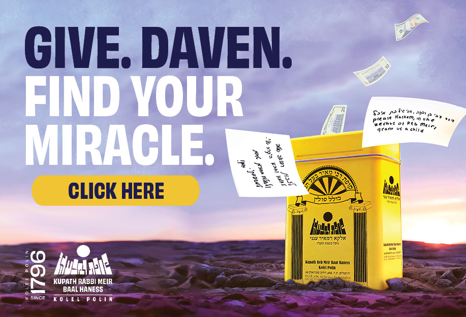 There is no more fitting time than Chanukah, as we celebrate the very miracles Hashem performed for us over 2,000 years ago, to give and find your own miracle. In Sefer Moed L’Kol Chai, Rav Chaim Palagi, zt’l, writes, “It is appropriate and fitting for every person in Klal Yisroel to donate on Chanukah, and specifically on Rosh Chodesh Teves, to the Kupah of Rabbi Meir Baal Haness…And it is well known that his prayers are not returned unanswered…this is true and tried.”