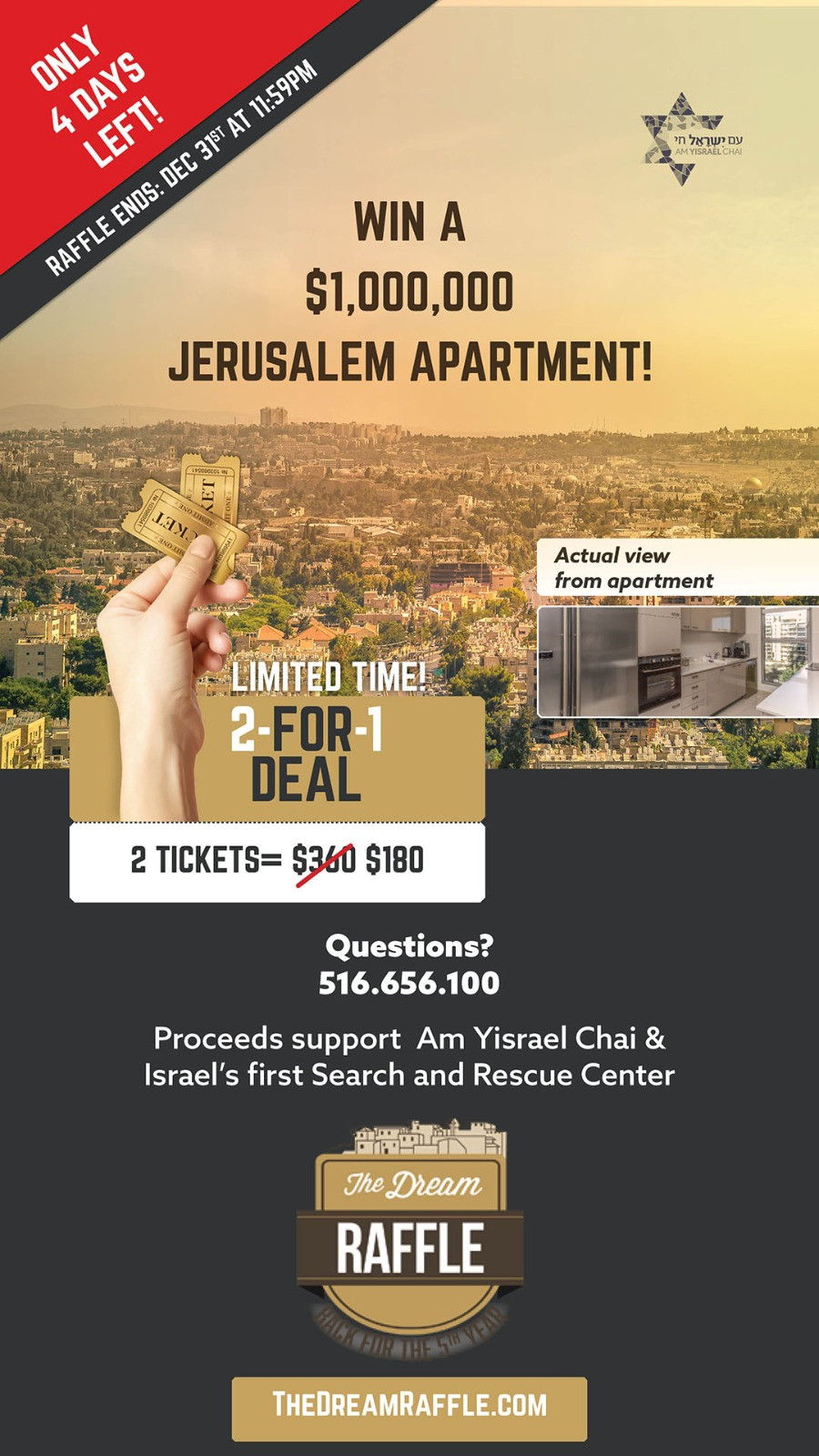 4 Days Left! Win A $1,000,000 Jerusalem Apartment!!!