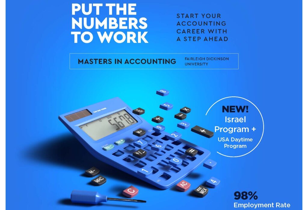 Make the most of your time in Israel and receive your Master’s Degree in Accounting from FDU, a degree from a top rated college, with a 98% placement rate.