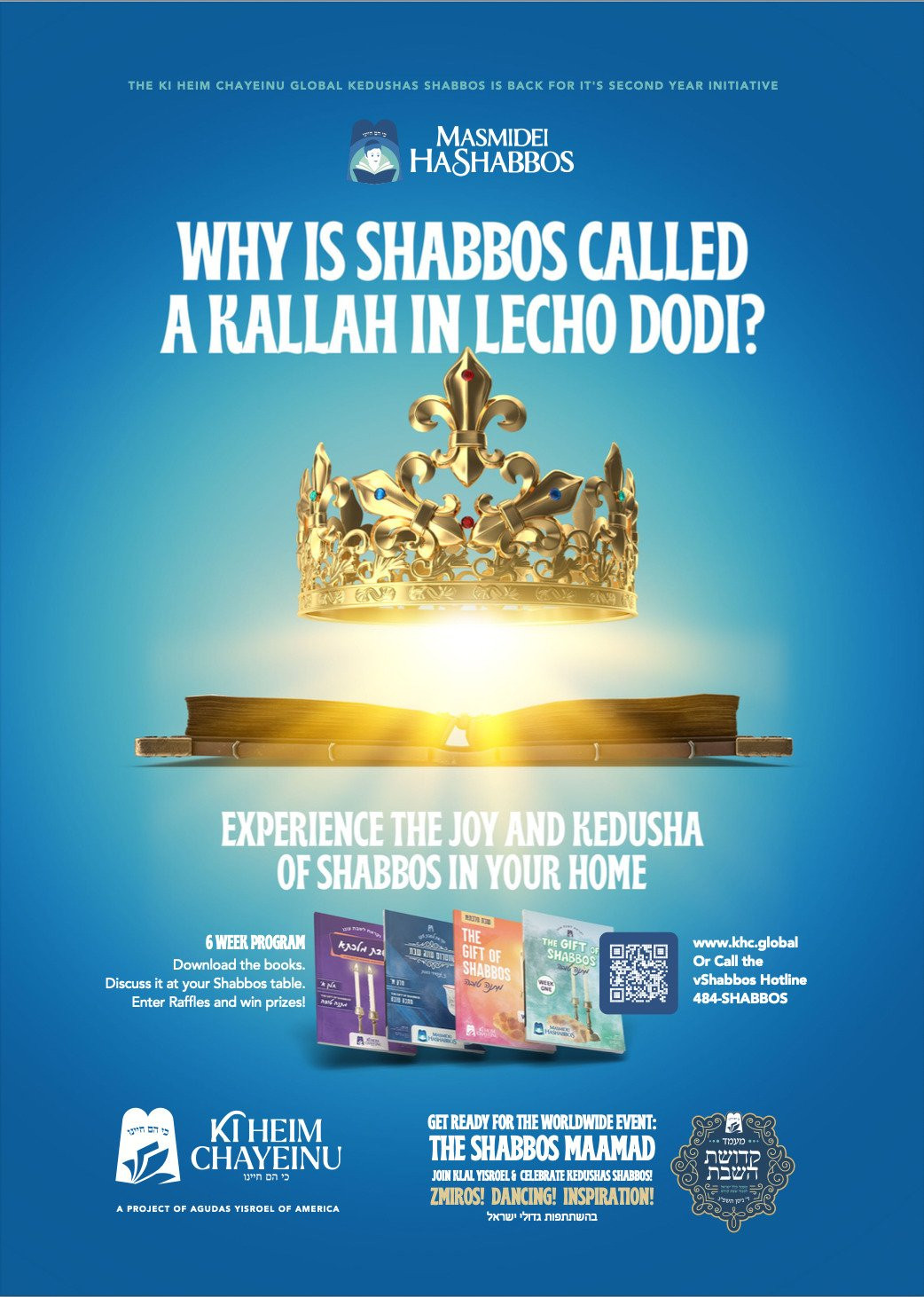 Exciting raffles will be conducted each week, with a grand raffle prize of two tickets to the Maamad Kedushas HaShabbos. Children are encouraged to read the material and discuss it with their families, as well as sing the songs that are in the booklet and answer some questions each week. Children can enter the raffles by calling the hotline and following the instructions on how to enter.